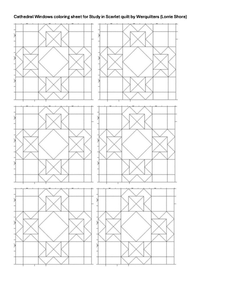 Wahoo! The blog site for werquilters is back up and running! I will be posting patterns for my Study in Scarlet quilt over the next two weeks to get us all caught up with PDFs. (The link to these patterns are also found in the comment section on YouTube for each tutorial…click the more MORE…and the link is below.)