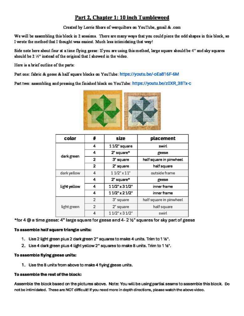 This is the block for part one, chapter 6…or should I say blocks. The directions below have the cutting chart for the 14 blocks that we will need for the quilt.